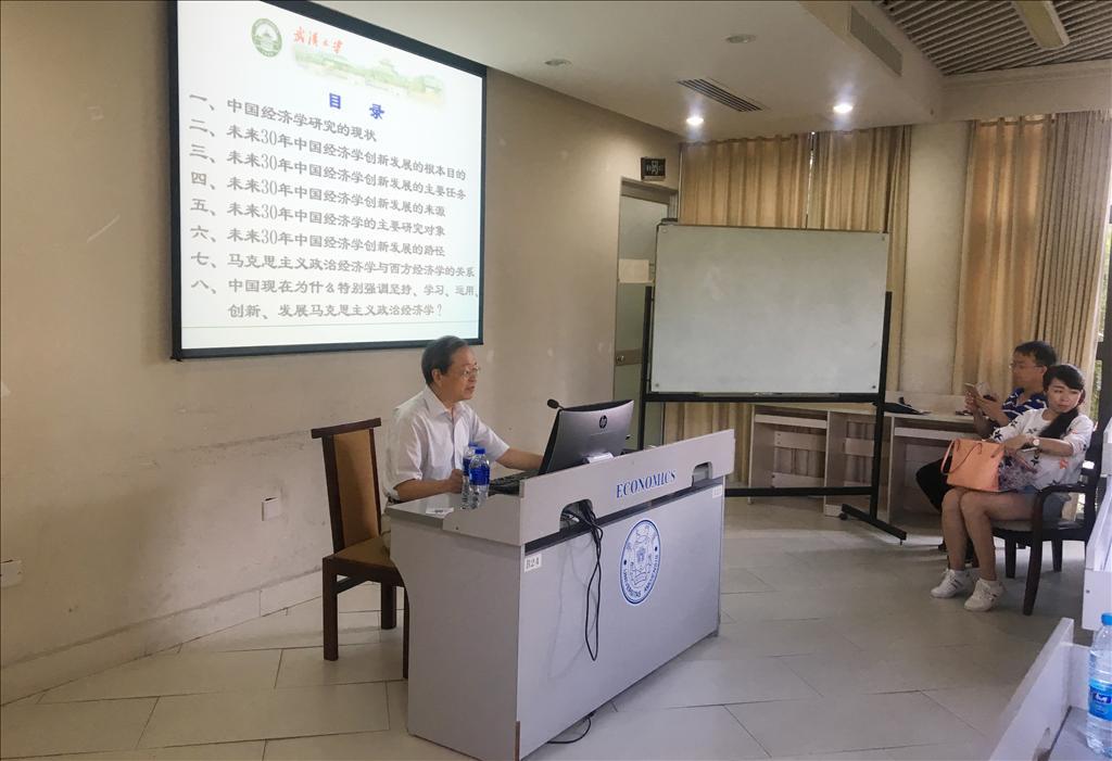 简教授首先就中国经济学研究的现状提出了自身的观点。不同于当今许多国内外学者所认同的“中国经济学理论自改革开放以来只有引进、学习,而自身无所建树”的观点,简教授提出,自改革开放以来,中国特色社会主义政治经济学已基本形成。同时,社会主义市场经济理论的提出,为世界经济学理论作出了重大贡献。许多社会主义经济发展的新理念、新观点已初步形成了中国特色的发展经济学。至于现今有学者对于中国经济学创新和发展以及中国经济学家的否定言论,简教授提出,不同的方法、标准、学者都将导致判断结果的全然不同,应当更加科学准确地判断经济学家学术水平的高低、贡献和影响的有无大小。
