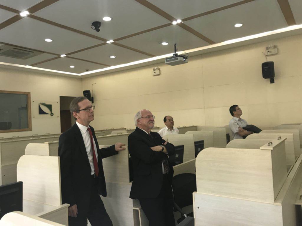 会后,周颖刚教授带领波兹南经济大学来访团参观了经济楼,耿森助理教授为来宾介绍了实验经济学实验室及教研成果。
