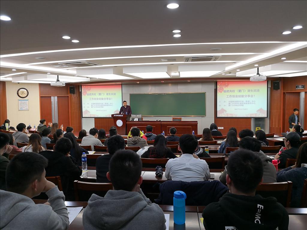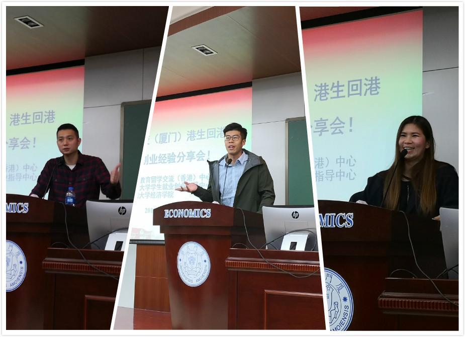 11月25日,由中国教育留学交流(香港)中心和厦门大学学生就业创业指导中心主办、厦门大学经济学院承办的福建高校(厦门)港生回港工作创业经验分享会在厦大经济楼N303举办。中国教育留学交流(香港)中心主任巩万、厦门大学经济学院党委副书记王艺宏、厦门大学学生就业创业指导中心任艳青老师等参加了分享会。来自厦大经济学院、王亚南经济研究院(WISE)的近70名港生到场聆听。
