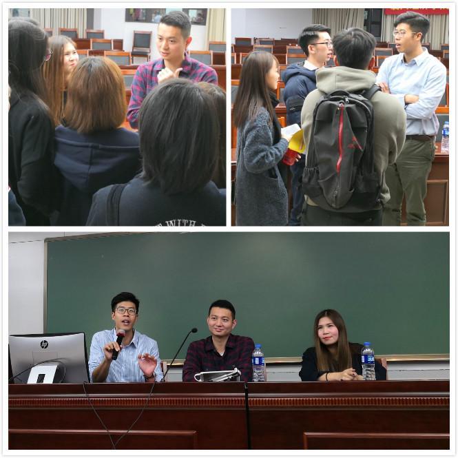 在提问环节,三位嘉宾就同学们提出的香港公务员的考试、实习就业信息途径、香港工作与内地联系的紧密程度等各种问题耐心细致地提出自己的见解与建议。三位校友同时告诉学弟学妹们校友资源的重要性,在校及走上工作岗位后要注意广建人脉资源,和同学好好相处。他们在回港就业之初,厦门大学旅港校友会给予了很多的帮助,现在他们也在校友会做些力所能及的工作。为了方便在场的同学们联系,三位嘉宾在最后还将个人微信公布给在场的同学们,浓浓校友情感人至深。