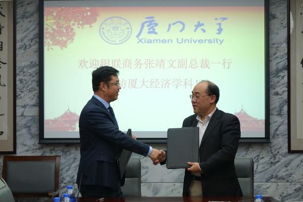 2015年1月,厦大经济学科与银联商务签署院企合作协议,合作期内,双方在信用风险评估模型优化、大数据拓展研究、中小企业融资平台搭建、信用风险评估模型品牌打造等方面取得了显著成果。在当今数据科学和大数据领域快速发展的大背景下,本次再度合作将延续“资源共享、优势互补、互利双赢、共同发展”理念,强强联手成立大数据联合实验室,以期在大数据研究、人才培养方面做出一流的成绩。