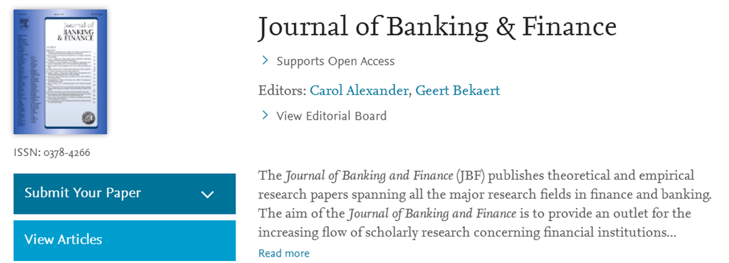 Journal of Banking & Finance是学术界公认的金融领域的高质量期刊,也是我校规定的金融学国际A-类期刊。近5年的平均影响因子为2.570。