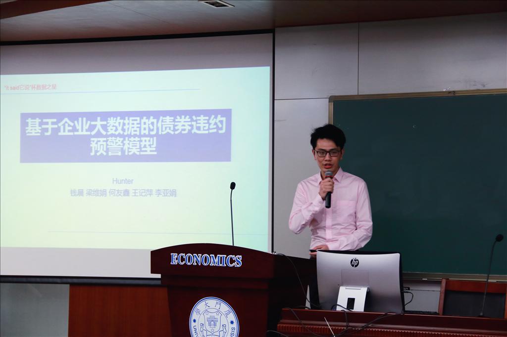 “it-SaiD它说”杯数据之星大赛由厦门大学经济学院、厦门大学王亚南经济研究院、计量经济学教育部重点实验室(厦门大学)、厦门大学数据科学与决策咨询中心主办,厦门大学——鹏元数据大数据信用评级联合实验室和厦门大学 WISER Club承办。大赛自2017年12月启动,共吸引39支队伍参赛,经过初赛阶段的严格评审,9支队伍脱颖而出,入围第一阶段决赛。