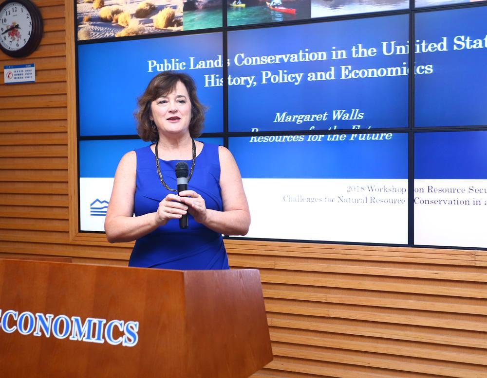 5月26日上午,未来资源研究所(RFF)资深研究员Margaret A. Walls女士发表主题发言,其主题为“Public Lands Conservation in the United States: History, Policy and Economics”。 Margaret在发言中讲述了历史背景、自然资源经济的环境转变、估值方式、生态系统服务、相关政策、以及现今面临的机遇挑战。在剖析完美国的环境保护以及公共用地政策后,Margaret指出了当今美国面临的三大挑战:一是关于公共用地的争议;二是美国人口的城镇化问题;三是关于美国国家公园的管理问题。