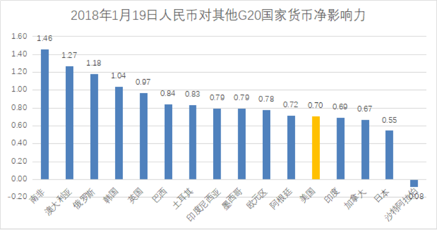 2017年7月,厦门大学经济学科更新其人民币汇率国际影响力指数,发现自引入逆周期因子一个多月以来,人民币汇率对G20国家货币和一带一路沿线国家货币的国际影响保持都相对稳定。