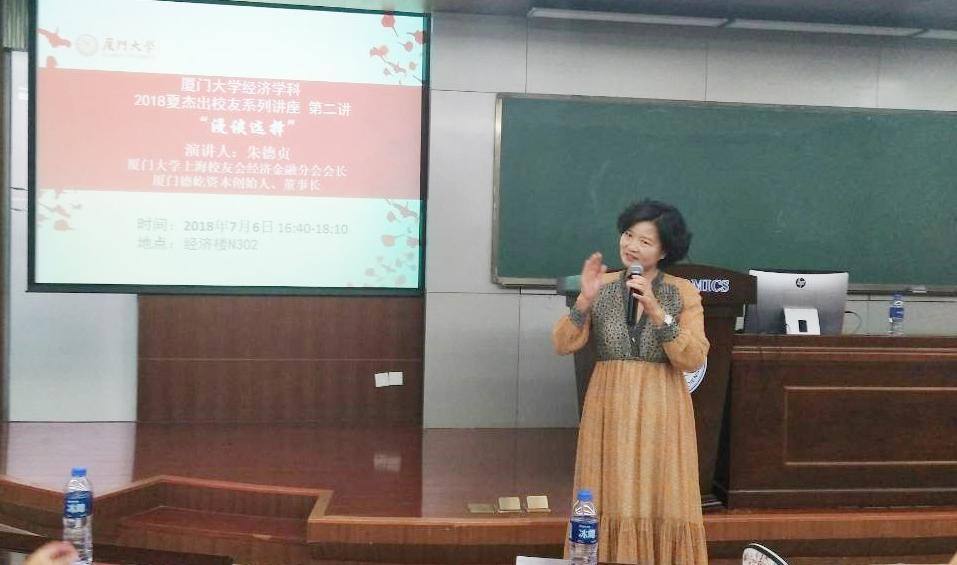 7月6日下午,厦门大学上海校友会经济金融分会会长、厦门德屹资本创始人和董事长朱德贞女士,为同学们带来了一场如沐春风般的互动问答和心灵解读。