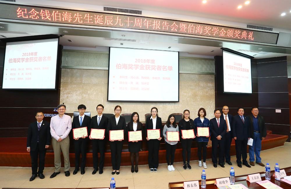 首期“伯海奖学金”共8人获得,其中,优秀本科生4名,硕士生、博士生各2名。黄鸿德、邱晓华、王春新为获奖的学生颁发获奖证书。