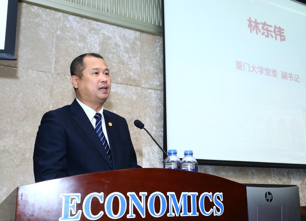 在颁奖典礼上,厦门大学林东伟副书记首先致辞,他希望借此次报告会和颁奖典礼,学习钱伯海先生的科学精神、教育志向和家国情怀,在缅怀先贤的同时,用先生的品格和风范来激励和指导我们的工作和学习,做到知行合一,严谨务实,把这些优良作风不断发扬光大,成为德智体美劳全面发展的栋梁之才。