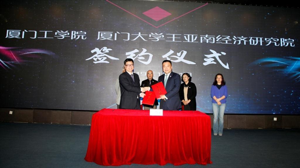 为充分发挥厦门大学经济学院和王亚南经济研究院(WISE)的师资力量和社会资源优势,更好推动双方的发展,1月14日,洪永淼教授和黄鸿德书记率领经济学院、WISE代表团赴厦门工学院举行厦大经济学科和厦门工学院的合作框架协议签约仪式,并与厦门工学院举行座谈会,就相关合作事宜进行交流对接。厦门工学院董事长李德文,执行董事、副校长李雄虎,副校长苏涵,副校长李咏梅及商学院常务副院长黄海深、副院长柯晶莹等参加了此次活动。