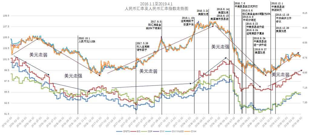 图2显示2019年年初至今,美元走弱,人民币兑美元汇率呈现出较为明显的升值态势,人民币兑一篮子货币汇率有所上升。那么,导致2019年年初以来人民币兑美元汇率显著升值的原因是什么呢?