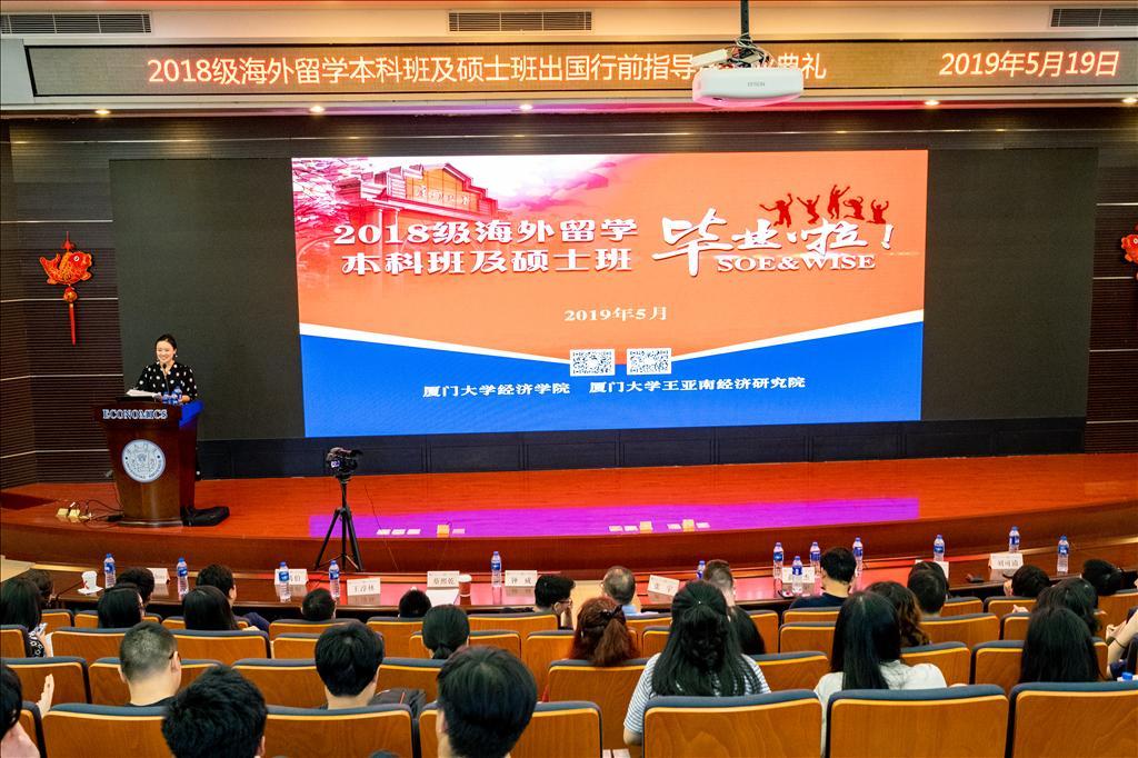 5月19日上午,厦门大学经济学院、王亚南经济研究院举行2019届海外留学本科班及硕士班出国留学行前说明会暨毕业典礼。厦门大学经济学院院长助理钟威,任课教师Katherine Brown、Kyle Melieste、刘禹伯、王淳林、薛绍杰、张宇、朱蔚萱,学院教师蔡熙乾、刘可清、王中雷、许璟睿,助教、往届留学归国学生以及2019届学生和家长等出席活动。