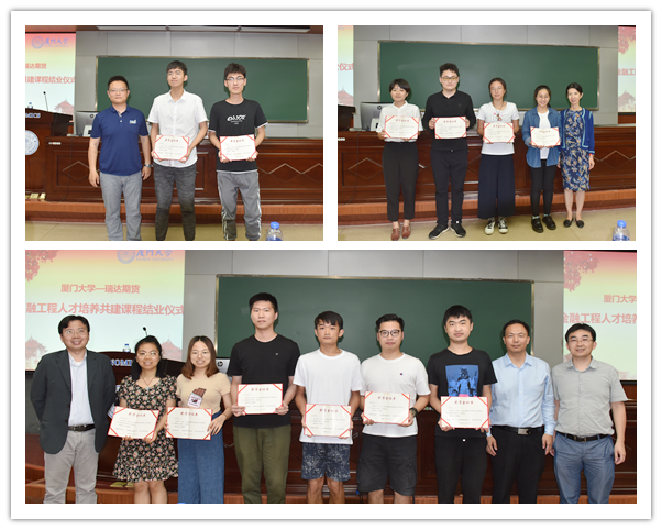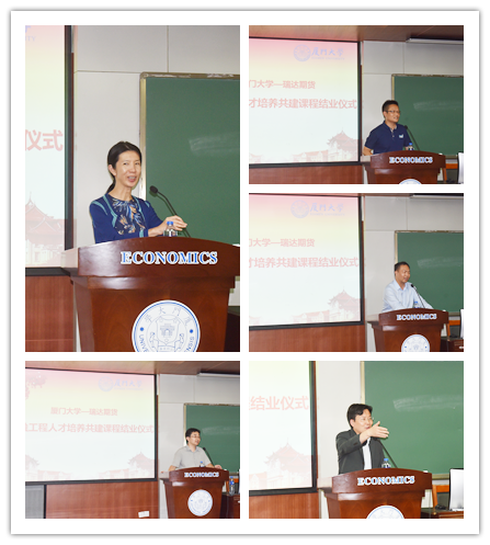 6月4日晚,厦门大学-瑞达期货金融工程人才培养共建课程结业仪式在厦门大学经济楼圆满完成。大连商品交易所市场部高级执行经理滕云,瑞达期货副总经理、中国期货业协会资管委员会专业委员徐志谋,厦大经济学科牛霖琳教授、陈海强教授、谢沛霖副教授出席结业仪式并致辞。