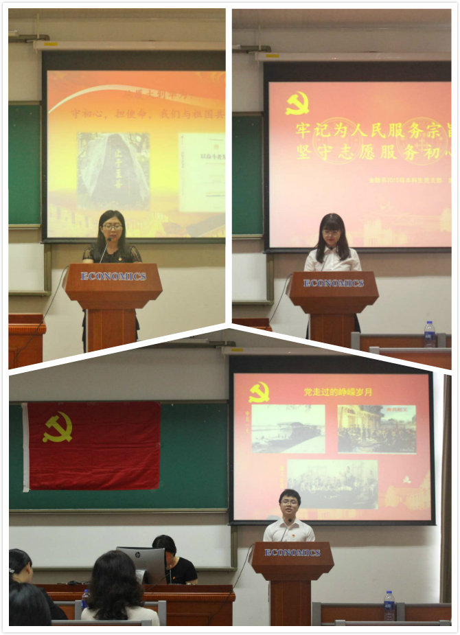 本次活动是学院党委为深入学习习近平新时代中国特色社会主义思想,扎实推进“两学一做”学习教育常态化制度化而举办的。活动通过党委书记领学、学生党员讲微党课等形式深入学习习近平总书记在“不忘初心、牢记使命”主题教育工作会议上的重要讲话精神,并针对经济学院毕业生就业领域的特点扎实做好廉政教育,进一步突出党员教育的针对性,教育引导毕业生党员做到初心不褪色,信念如磐石,以担当书写风采,用奋斗点亮青春!