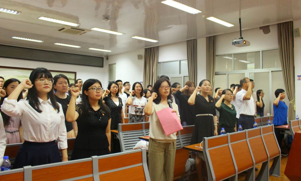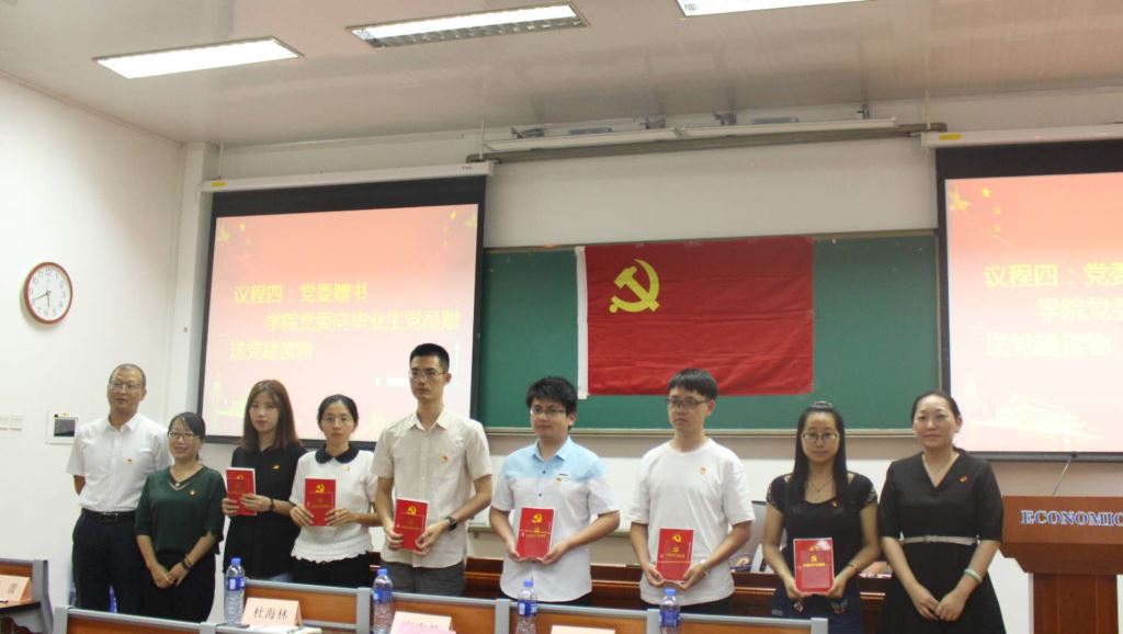 会上,经济学院党委还向参会的全体毕业生党员赠送了《中国共产党章程》、《中国共产党党员教育管理工作条例》、《中国共产党纪律处分条例》等党建学习资料,勉励毕业生党员认真学习党章党规党纪,做政治上的明白人。随后,参会的全体师生党员在院党委副书记周蕾的带领下,重温了入党誓词。