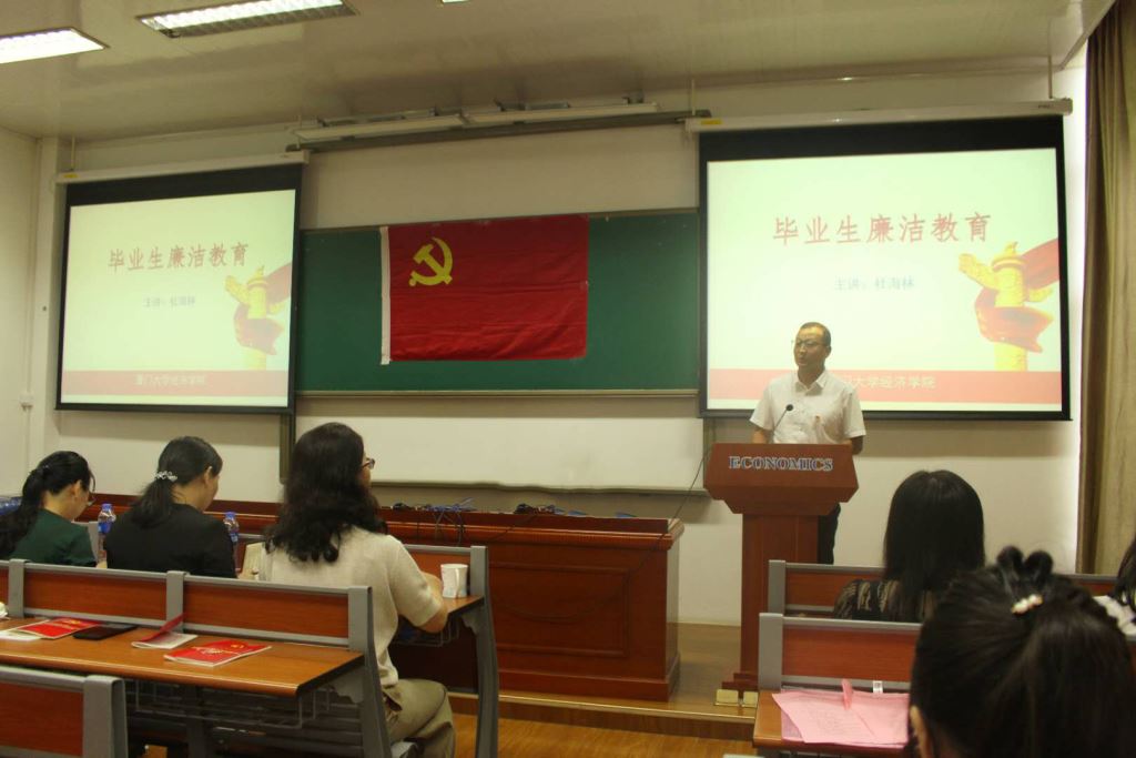 随后,院党委副书记杜海林为毕业生党员上了一堂深刻的廉政教育课,他引经据典、深入浅出地讲解了廉洁教育的意义、贪腐的原因分析以及青年党员该如何做,教育引导毕业生党员们扣好人生第一粒扣子,时刻对照党规党纪检查自己的思想和言行,正确处理好公与私、是与非、苦与乐的关系, 做到有原则、有底线、有规矩,永葆共产党人的政治本色。