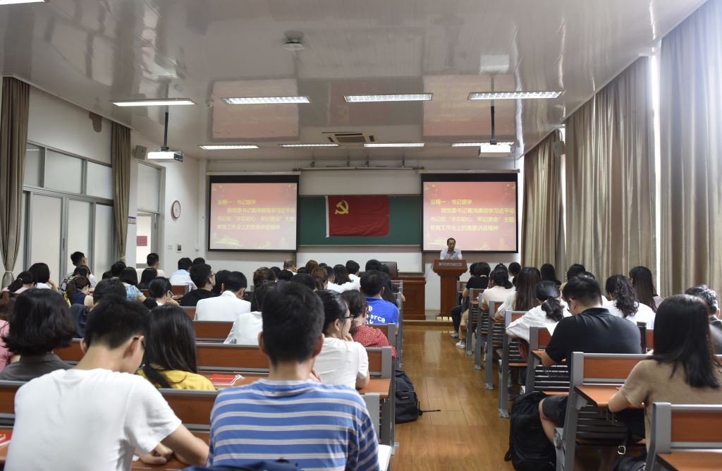 6月17日下午,经济学院党委在经济楼D235举办“ 守初心担使命 强国路上奋斗有我”2019届毕业生党员教育大会。校党委组织部副部长廖志丹、校学生工作处副处长许美霞,经济学院党委书记黄鸿德、副书记杜海林,院党务秘书、党委组织员、全体辅导员及近百名毕业生党员代表参加了此次会议。会议由学院党委副书记周蕾主持。