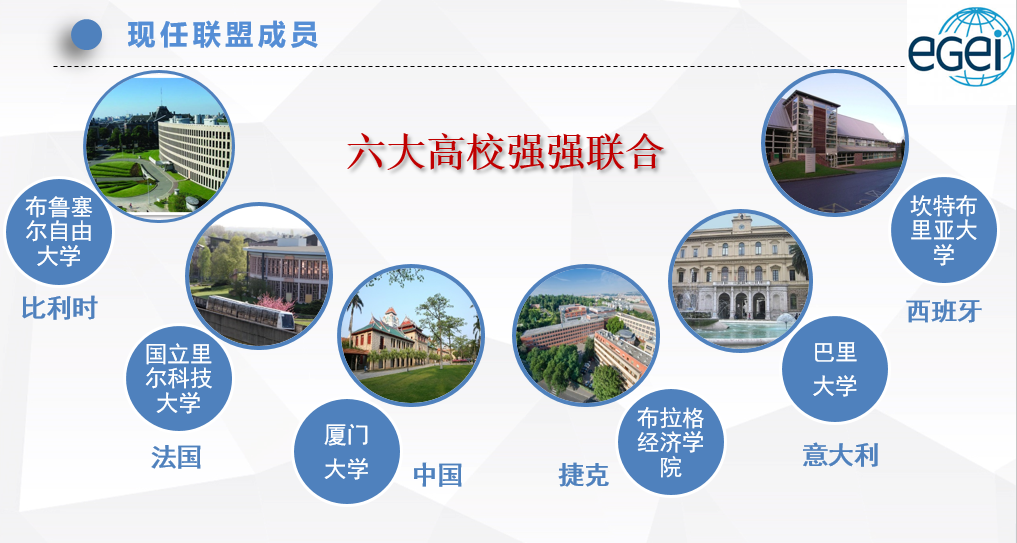 近日,国家留学基金委公布了2019年“创新型人才国际合作培养项目”第二批获资助名单,全国各高校共有53个新申报项目获得资助。厦门大学与比利时布鲁塞尔自由大学、法国里尔科技大学、捷克布拉格经济学院、意大利巴里大学、西班牙坎塔布里亚大学等六校合作的“经济全球化与欧盟一体化”联合硕士项目(Master in Economics of Globalization and European Integration,简称:EGEI)获得批准资助。这是厦大经济学科人才培养项目第二次获得此项资助。