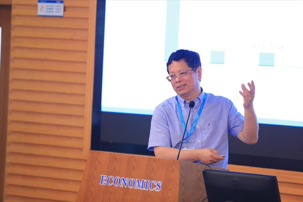 随后,由管理科学部任之光副处长主持研讨会,经济科学学科“十四五”发展规划战略负责人洪永淼教授就“中国经济学科发展的状况、机遇与挑战”这一主题作主题报告。洪永淼教授主要从经济科学发展的趋势、中国经济科学目前的现状、国际视角下中国经济科学的地位以及发展的机遇和挑战等方面展开。