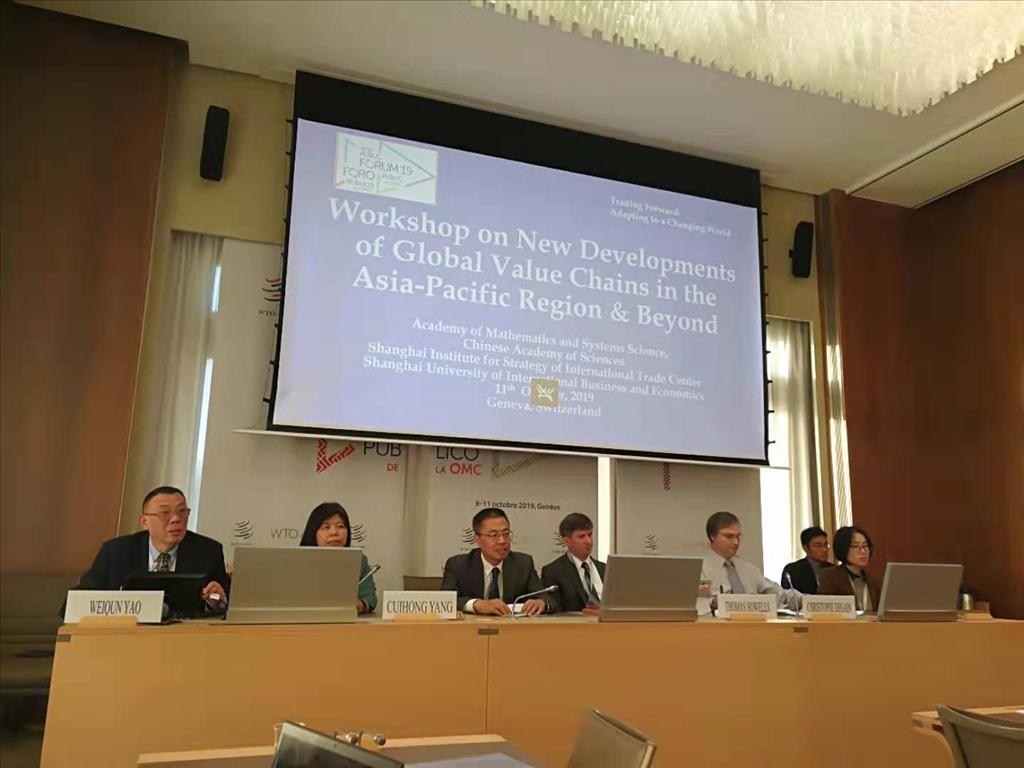 2019年10月9日-12日,厦大-中科院“计量建模与经济政策研究”基础科学中心项目骨干成员之一杨翠红研究员赴瑞士日内瓦参加世界贸易组织(WTO)2019年公共论坛(WTO Public Forum),并于10月11日上午和上海国际贸易中心战略研究院执行院长/上海WTO事务咨询中心姚为群教授共同组织了题为New Developments of Global Value Chains in the Asia-Pacific Region and Beyond 的研讨会,会上,杨翠红研究员做主题演讲。