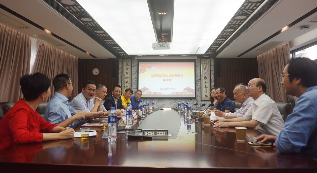 捐赠仪式结束后,院友代表与我院老师进行座谈交流,院党委书记黄鸿德向代表们介绍经济学科的发展现状,并着重强调了学院在立德树人特别是诚信教育上重要举措。代表们深情回顾了在经济学院求学的难忘时光,阐明出资设立助学金的初心,对母院的建设与发展的建言献策并表达美好期许。双方深入畅谈,友好交流,共商良策,场面温馨热烈。