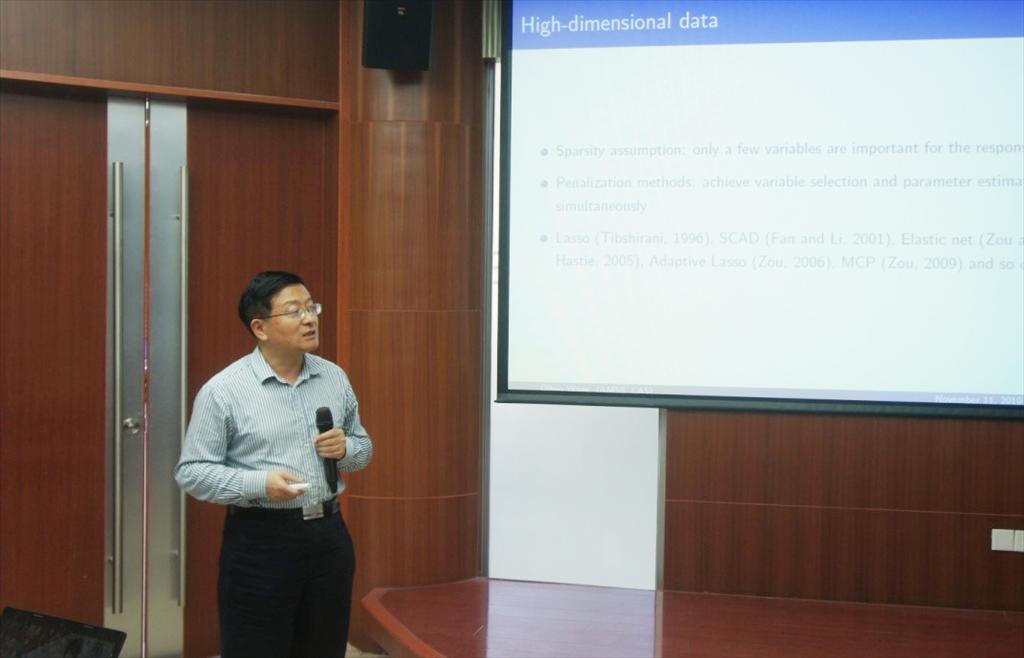 下午场第一位主旨演讲嘉宾是中国科学院数学与系统科学研究员、核心骨干特聘研究员王启华教授,他针对高维小样本,就基于分类问题的变量筛选提出了新的筛选方法,不被固有思维所局限。他在后续的演讲中证明了该方法的渐进性质,并展示了模拟结果和实证分析结果,所研究的方法可以应用到基因筛选。