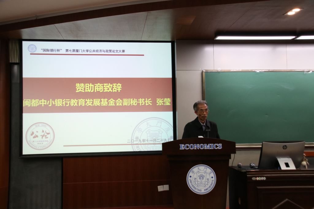 闽都中小银行教育发展基金会副秘书长张莹为大赛致辞。张莹对大赛的成功举办表示祝贺,指出大赛从创立到历经七年成长,无论是赛制的完善程度还是参赛作品的质量都有了长足的进步,衷心祝愿公共经济与政策论文大赛能够越办越好。闽都中小银行教育发展基金会作为国内第一家中小银行教育发展基金会,由厦门国际银行与厦门大学教育基金会联合发起,于2009年1月获福建省民政厅批准设立。张莹表示基金会将继续支持厦门大学公共经济与政策论文大赛。