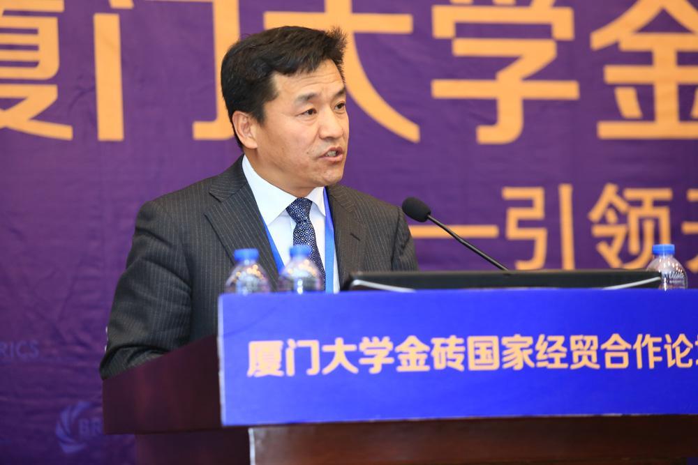商务部国际贸易经济合作研究院副院长李光辉研究员发表题为《金砖国家经贸合作机制探讨》的主题演讲
