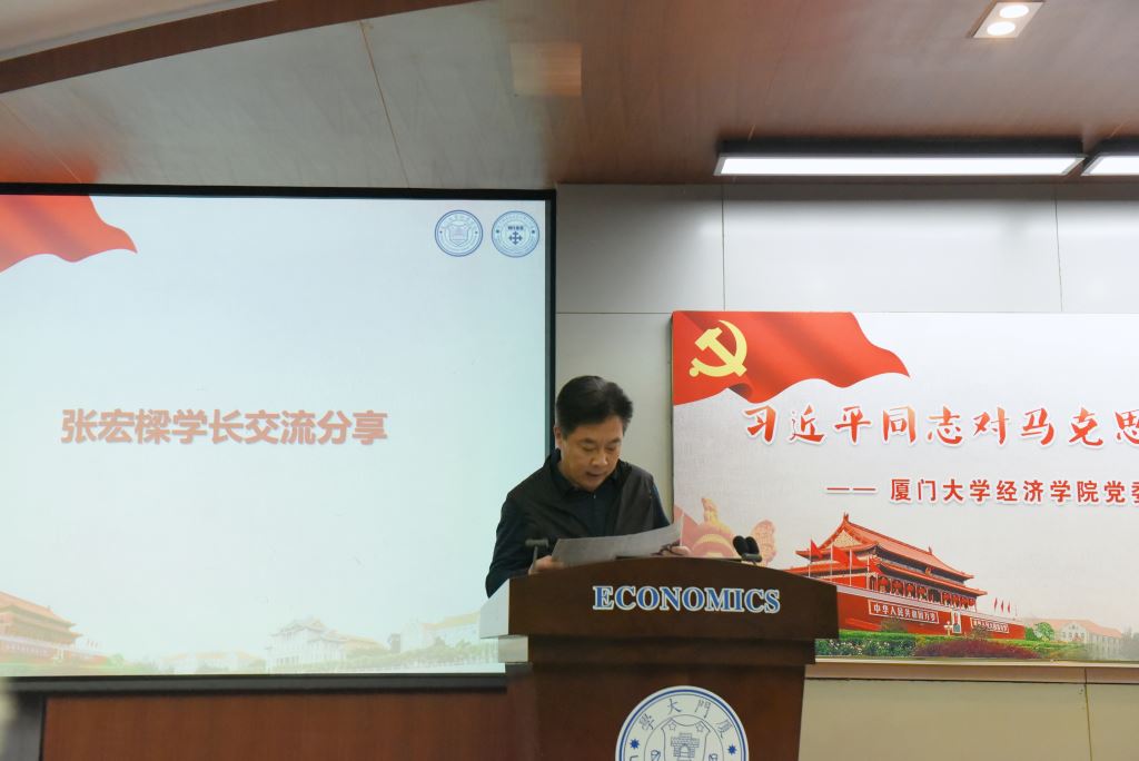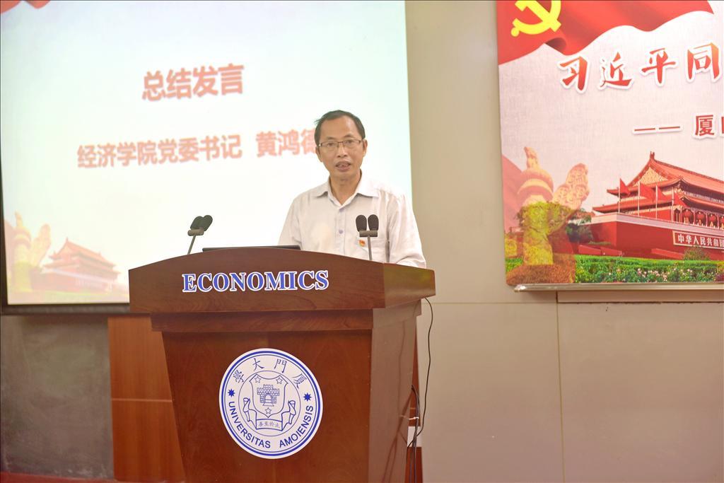 分享会结束后,黄鸿德书记做了总结发言。他回顾了厦门大学经济学科开展马克思主义政治经济学教学与研究的悠久传统,从20世纪40年代开始,王亚南、郭大力先后到厦门大学任教,开创了以马克思主义经济理论为指导、具有鲜明特色的“厦大经济学派”。时至今日,经济学科仍一直重视并致力于推动当代马克思主义政治经济学、中国特色社会主义政治经济学研究。多年来,经济学科坚持举办了一系列马克思主义政治经济学研讨活动,赢得了学界的广泛赞誉。黄书记还强调了致力推动马克思主义政治经济学教学与研究的理论价值和时代意义,强调要学深悟透习近平新时代中国特色社会主义思想,并用它指导实践和推进工作,呼吁广大师生要牢记经济学人的初心和使命,站在中国人的立场研究中国经济问题,为建设世界一流经济学科做出新的贡献。