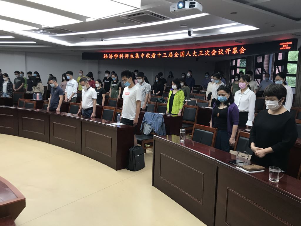 5月22日上午,经济学院党委组织学院师生集中收看十三届全国人大三次会议开幕会。会前,师生们集体肃立,为在抗击新冠肺炎疫情中牺牲的医护工作者和去世的同胞默哀。