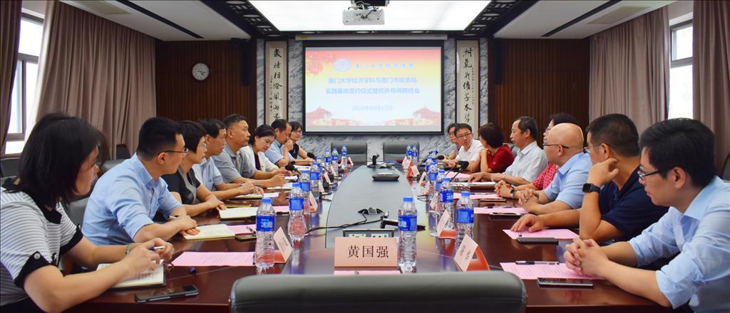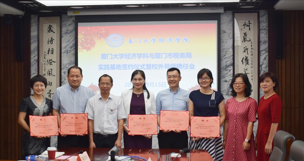 9月15日上午,厦门大学经济学科与厦门市税务局税务专硕实践基地签约仪式暨校外导师聘任会在经济楼N501会议室举行。厦门大学经济学院党委书记黄鸿德,副书记周蕾,财政系主任童锦治及教师代表谢贞发、魏志华、熊巍、林文生、陈烨,厦门市税务局党委委员、总经济师杨国全,党委委员、纪检组长黄英,教育处处长蒋宇及受聘校外导师代表张平竺、毛云芳、陈美玲、朱峰等出席了会议。会议由经济学院谢贞发教授主持。