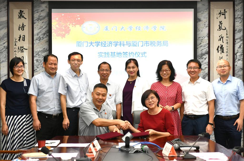 厦门大学财政系主任童锦治教授与厦门市税务局党委委员、总经济师杨国全签订了税务专业硕士联合培养协议书。
