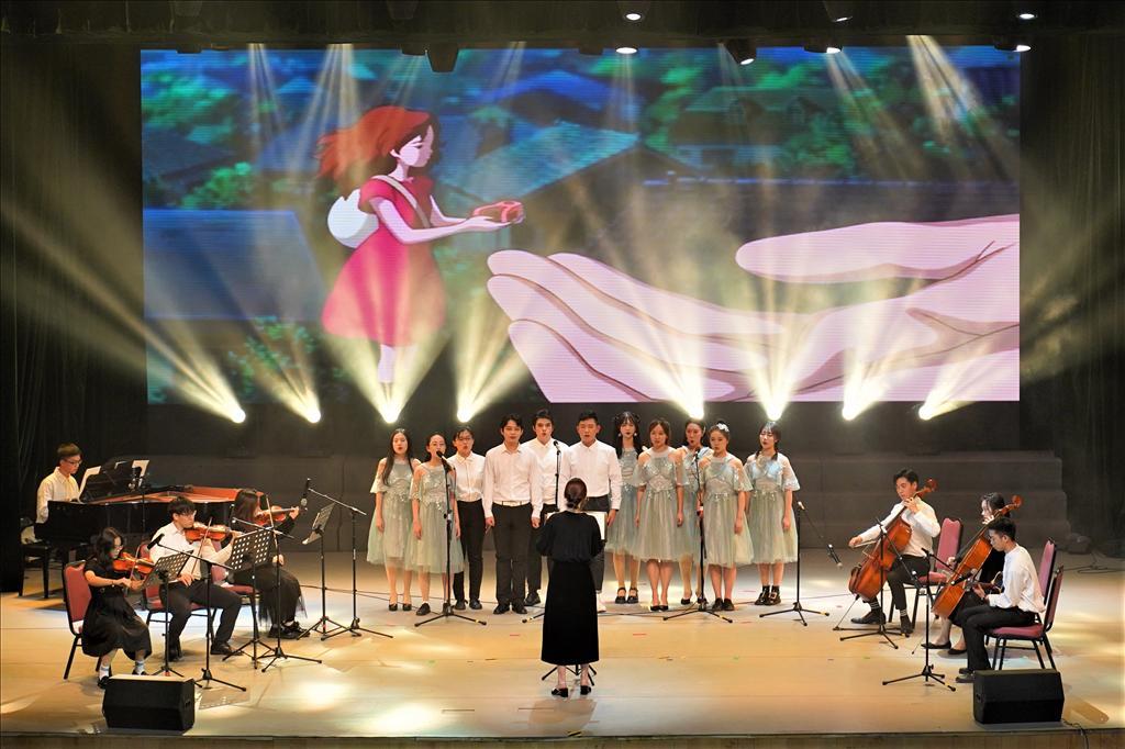 第二篇章中,一系列喜闻乐见的经典视听艺术作品在二次创作后轮番上演,如乐器演奏《来日之歌》和歌曲串烧《我想和你唱》。其中,《来日之歌》将著名华语电影《麦兜当当伴我心》的插曲与卡农和西洋乐器相结合,层次丰富多样、旋律悠扬动听,给人似曾相识,又别出心裁的惊喜。除此之外,去年反响热烈的保留节目《联播趣谈》,以新颖独到、贴近生活的形式讲述近阶段的趣人趣事,见微知著,在生活中发现别样的精彩。而走秀节目《红色流影》以时装定格时光,用不同年代的服饰带领全场师生感受时代的缩影。