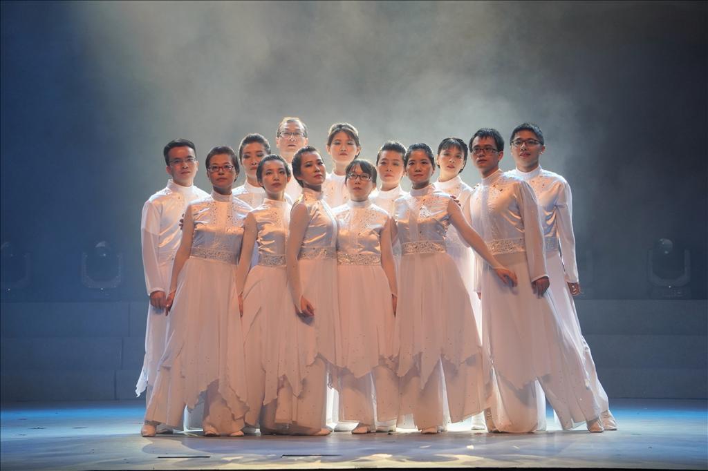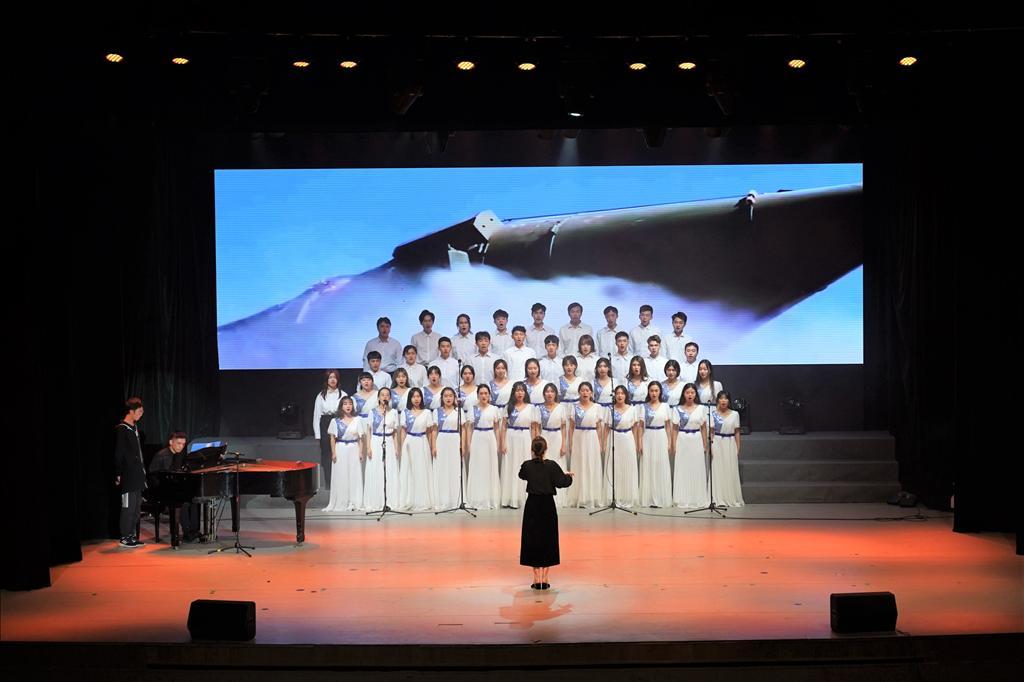 在第三篇章中,合唱军乐《当那一天来临》和舞蹈串烧《梦无限可能》将汇演推向高潮随后,学院党委副书记周蕾老师、杜海林老师和全体辅导员一起倾情演绎现代舞《呼唤》,舞台犹如画卷一般徐徐展开,既清新自然又恢弘大气,他们将柔情似水和坚韧有力相结合,用真挚的情感呼唤爱与希望,表达了对生命的呵护和对抗疫战士及人民的敬仰。歌曲《一直到黎明》结合经典原创校史剧目《遥望海天月》中的部分片段,致敬疫情中的英雄,歌颂伟大的抗疫精神,寓意黎明即将来临。现场观众在热烈与温情中,感受着激扬的青春与温暖的希望。
