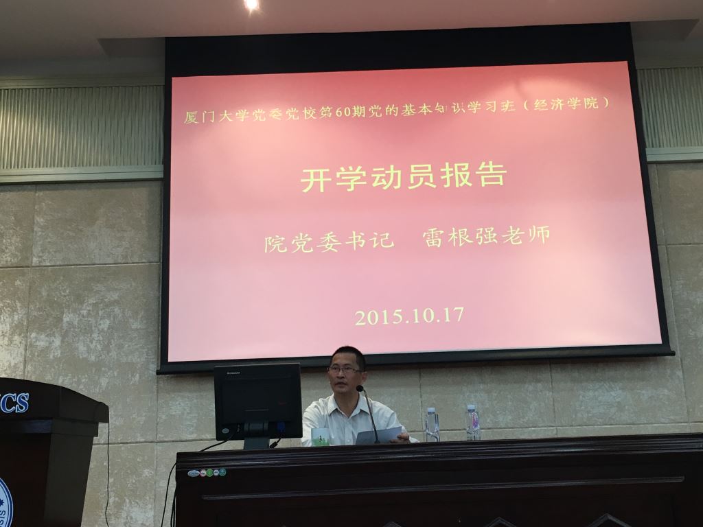 10月17日上午,党校学习开班仪式在经济楼N402隆重举行。经济学院党委书记雷根强作学习班的动员报告,他从“提高认识,明确举办党的基本知识学习班的重要意义”、“明确目标,努力从思想上、行动上成为一名共产党员”、“严格要求,系统学习、全面掌握党的基本理论和基本知识”等三方面对学员们提出了要求和希望。