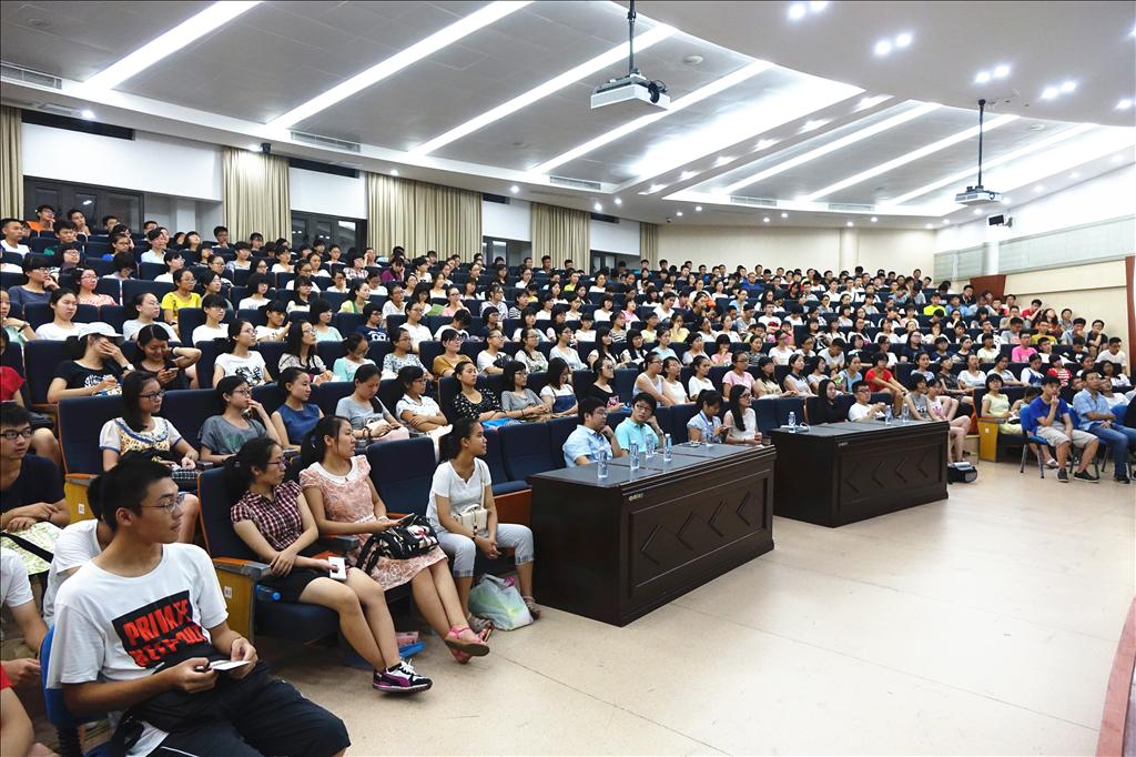 8月26日晚,经济学院和王亚南经济研究院(WISE)合办的金融学、统计学和经济学本科国际化试点班2015级招生宣讲会在经济楼N402举行。宣讲会吸引了经济学院500多名新生和学生家长到场听讲。两院教师郭晔、林明、牛霖琳、张烁珣、钟威以及两院教学管理人员陈烽、陈雅萍、林嘉、王晓微和WISE经济学本科国际化班的在读学生代表参加宣讲会并作项目介绍。
