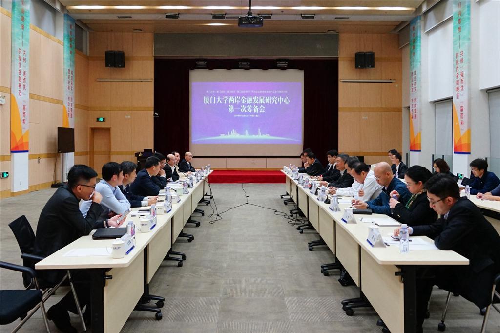 金融产业合作推进小组陆方召集人李礼辉、厦门大学校长张荣共同为中心揭牌。12月5日晚上,厦门大学两岸金融发展研究中心第一次筹备会议在厦门银行总行正式举行。筹备会由李礼辉主持。国务院台湾事务办公室经济局,国家银保监会、厦门市金融办、厦门市银保监局、中心签约各方单位负责人以及大陆银行业驻台机构相关负责人等三十多人参加了筹备会议。国家银保监会、厦门大学经济学院、国台办代表依次就中心未来工作重心和合作模式发言。厦门市金融办、银保监局表示地方金融监管机构将全力支持中心相关工作。中心理事会商讨中心章程、会员管理办法等中心规章制度,明确中心后续的运营机制,同时筹建下一步具体工作计划,布置各方具体工作承接,确定中心第一期研究项目合作等事项。