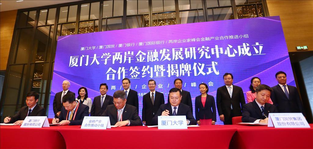 金融产业合作推进小组陆方召集人李礼辉与厦门大学校长张荣、厦门国贸集团股份有限公司总裁高少镛、厦门银行董事长吴世群、厦门国际银行副总裁黄大庆共同签署合作框架协议签署。两岸企业家峰会理事长萧万长、副理事长张平、秘书长陈瑞隆,台方召集人魏启林,福建省人民政府副省长郭宁宁,金融产业合作推进小组台方副召集人李纪珠,国台办经济局局长张世宏,省金融监管局局长薛鹤峰,厦门市副市长韩景义,省政府副秘书长詹志洁见证签约仪式。