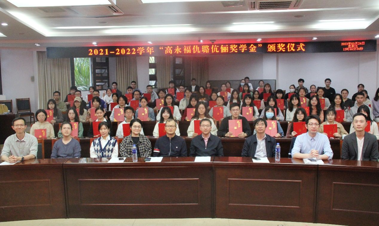 许梦涵老师对本次奖学金的颁发、评选流程作了简要介绍。“高永福仇璐伉俪奖学金”旨在奖励优秀、表彰先进、助困助贫,鼓励同学们勤奋学习、积极进取。在2021-2022学年,共颁发学生个人奖项81个,包括卓越奖14人、优秀奖33人、励志奖34人,团体奖项3个,包括两项社会实践奖和一项优秀社团奖,获奖的本硕博学生共计83人,涵盖学习成绩、社会实践、勤工俭学和科研成果等方面。