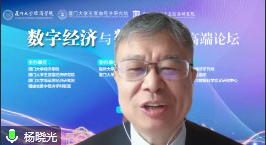 杨晓光分析了中华民族的经商历史,历史上对商业的抑制等诸多因素,使得古代中国未能诞生出市场经济。杨晓光教授强调,改革开放打破了这一桎梏,社会主义市场经济制度的全面建立,让中国人走出国门、走向世界。并且,我国庞大的市场、民众对数字信息收集的配合等因素,使得中国具有发展数字经济的巨大优势。杨晓光指出,想要充分发展数字经济,还应该直面我国在关键性原创技术和原创商业模式上相对匮乏的劣势,加强技术创新、加强产业数字经济转型,助力数字经济行稳致远。