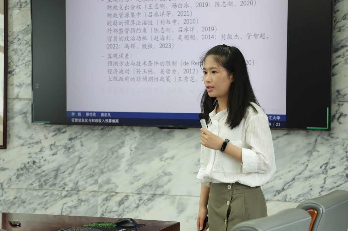 本次双边论坛由开幕式、论文报告及点评、支部建设与人才培养研讨三个环节构成。论坛开幕式由厦门大学经济学院财政系主任刘晔教授、浙江大学经济学院李培副教授主持,厦门大学经济学院副院长谢贞发教授致开幕辞。谢贞发表示,浙大与厦大财政学科的双边交流历史悠久,此次线下会议的召开使两校师生的交流更密切、直接,期望借此平台两校继续在学术研究、思政教育、学生培养多方面加强合作和共同进步。