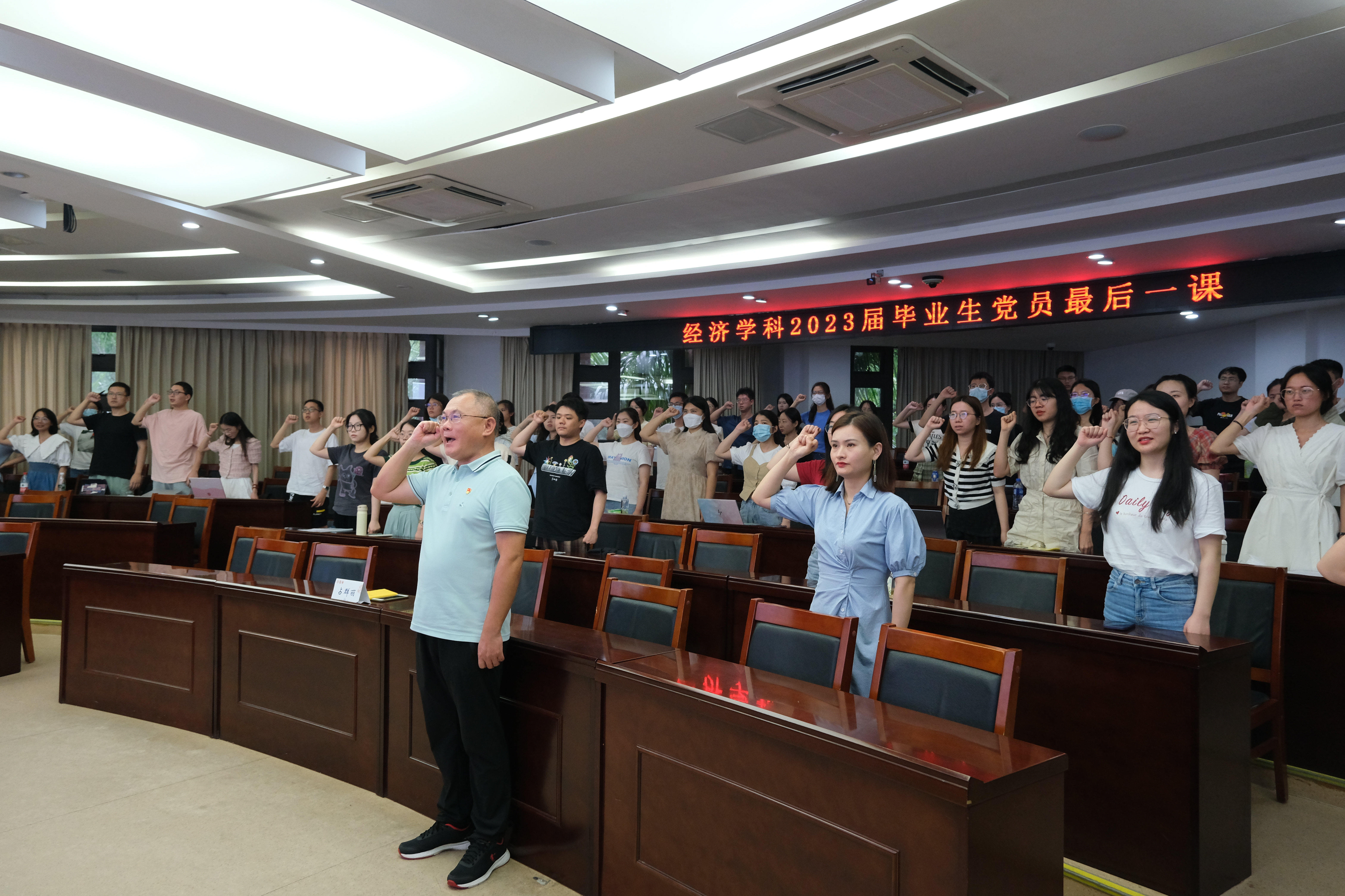 近日,为学习宣传贯彻党的二十大精神和深入开展学习贯彻习近平新时代中国特色社会主义思想主题教育,进一步加强毕业生党员理想信念教育、党的宗旨教育、党风廉政教育,引导毕业生党员坚定不移听党话、跟党走,争做勇担民族复兴重任的时代新人,经济学院于经济楼N302开展了经济学科2023届毕业生党员最后一堂党课活动。参会人员有经济学院党委书记高忠华、2023届毕业生党员代表。