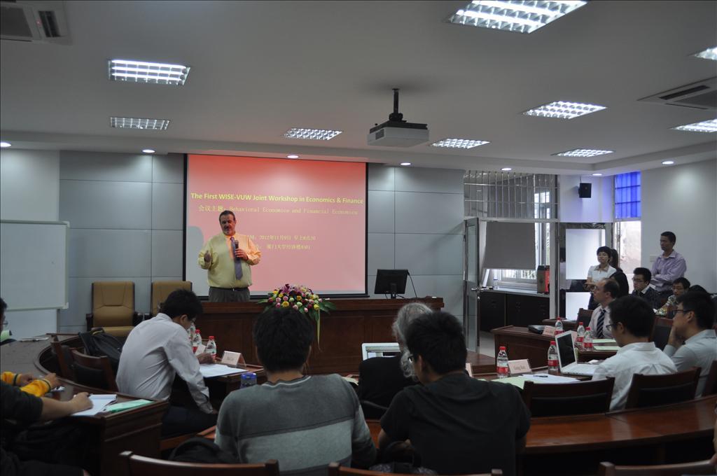11月9日,首届新西兰惠灵顿维多利亚大学(VUW)—王亚南经济研究院(WISE)学术研讨会在经济楼举行。来自新西兰VUW的Morris Altman教授、林海教授和Adrain Slack 教授与厦大经济学科的龙小宁教授、Jason Shachat教授、方匡南教授、耿森教授、韩乾教授等在研讨会上作精彩演讲。