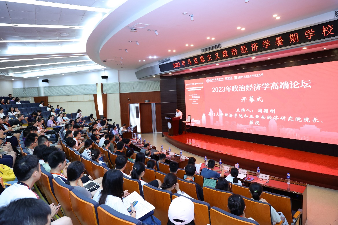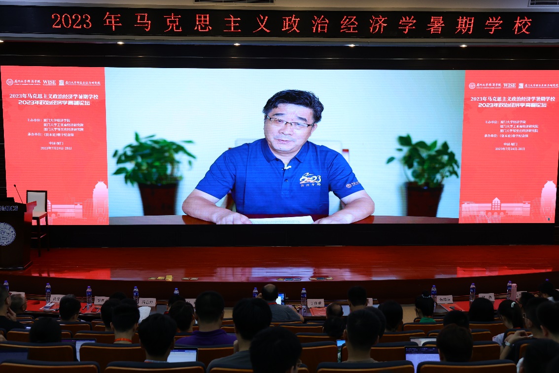 7月26日,2023年政治经济学高端论坛在厦大经济楼如期举行。该论坛是马克思主义政治经济学暑期学校的重要组成部分,本届主题为“中国式现代化视野下的政治经济学”,由厦门大学经济学院、王亚南经济研究院、邹至庄经济研究院主办,《资本论》数字纪念馆承办。论坛包含开幕演讲、主旨演讲和中青年学者论坛等环节,马克思主义政治经济学暑期学校的授课老师、学员等参会。