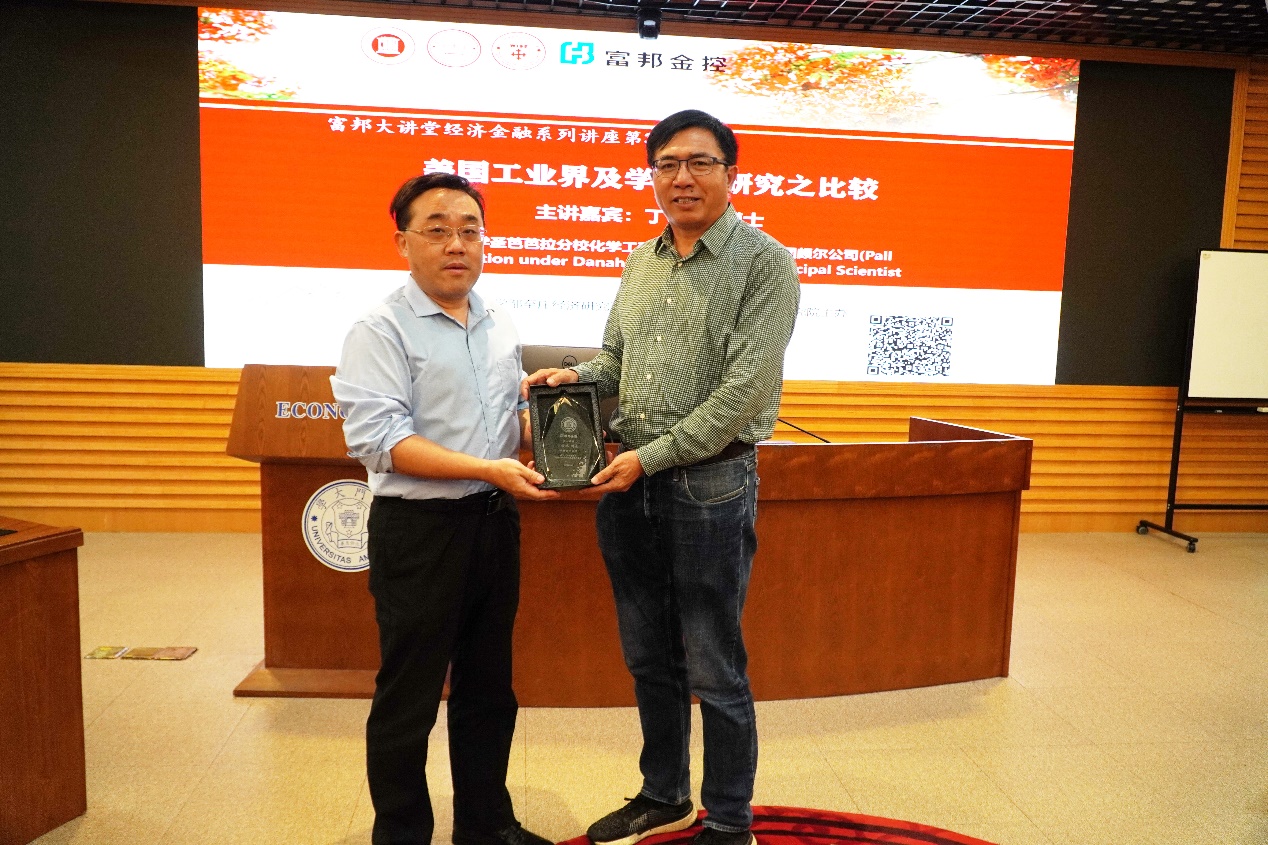 讲座由厦门大学邹至庄经济研究院、经济学院、王亚南经济研究院联合主办,厦门大学富邦两岸金融与产业研究中心承办。经济学院原党委书记黄鸿德老师主持讲座。讲座开始前,经济学院、王亚南经济研究院院长周颖刚教授为丁俊琪博士颁授讲座纪念牌。