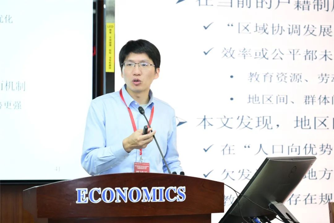 方颖副校长,中国社会科学院工业经济研究所所长、《中国工业经济》主编史丹,张其仔副主编为获奖代表江艇、杨子晖、柏培文颁授获奖证书。三位获奖代表依次发表获奖感言。