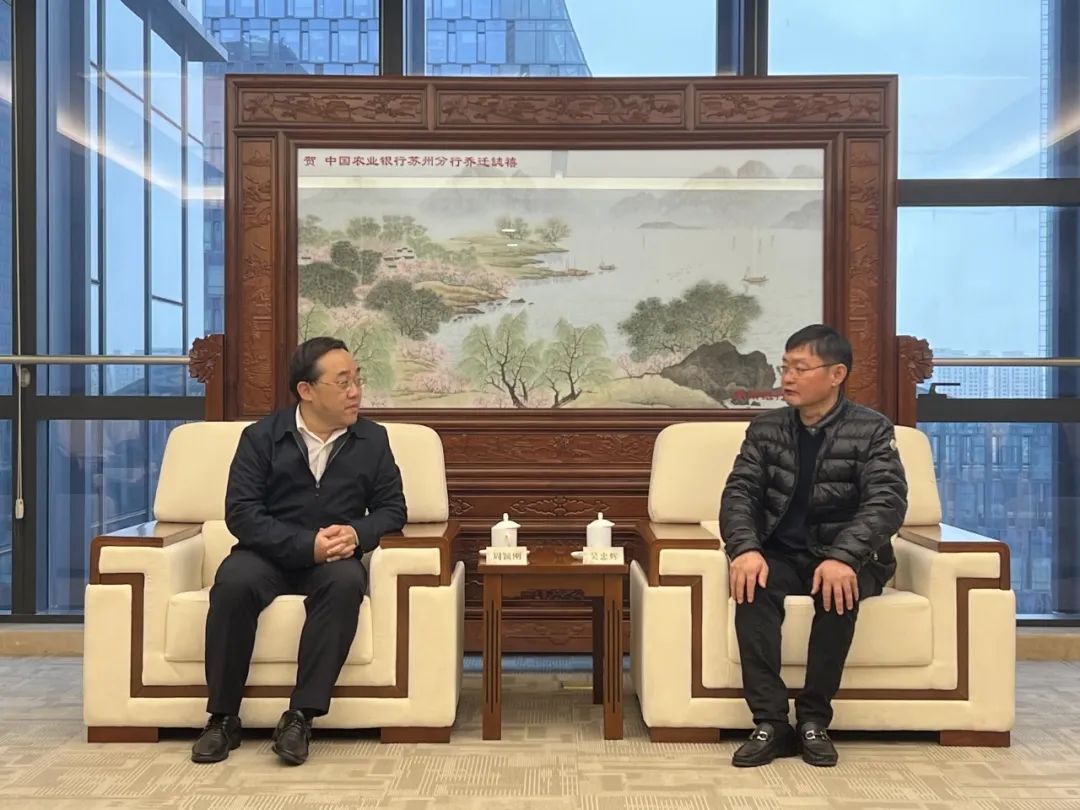 12月11日,周颖刚、黄鸿德带队走访中国农业银行苏州分行。中国农业银行江苏省分行党委委员、副行长、苏州分行党委书记、行长吴忠辉首先介绍农行苏州分行的特色和发展情况,随后双方就人才培养和就业实习等问题达成共识。