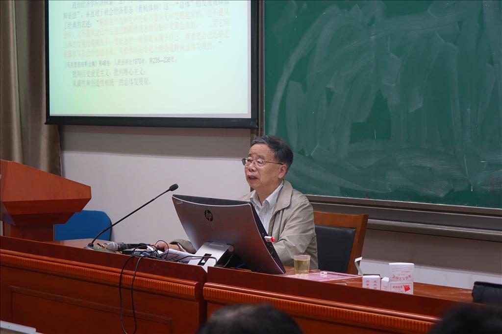 讲座中,颜教授表示,政治经济学是治国理政、经世济民之学。中国特色政治经济学体系是习近平新时代中国特色社会主义思想的重要组成部分。他从以下三个方面对“中国特色政治经济学体系”进行了探讨。第一,中国特色社会主义政治经济学研究对象和方法。第二,中国特色社会主义政治经济学体系的逻辑起点,选择逻辑起点应该遵循三大的原则,即始基性、现实性以及抽象性。社会主义条件下的“变形的商品”,应该是中国特色社会主义政治经济学体系的逻辑起点。第三,中国经济体制变迁的前瞻性研究,颜教授从社会主义市场经济出发,延伸到了调节经济,对中国经济体制变迁进行了详细的分析。颜教授还介绍了中国特色政治经济学体系和《资本论》的概况。他认为党的十九大把习近平新时代中国特色社会主义思想确立为党必须长期坚持的指导思想,实现了党的指导思想又一次与时俱进,体现了中国特色政治经济学体系是习近平新时代中国特色社会主义思想的重要组成部分。而在全球化语境和当今时代条件下,重读《资本论》,无疑有助于彰显和发扬其在场的现实可能性、跨越历史时空而与当今时代对话的当代价值,以及在新的历史语境下回应现实和指引实践的理论张力。